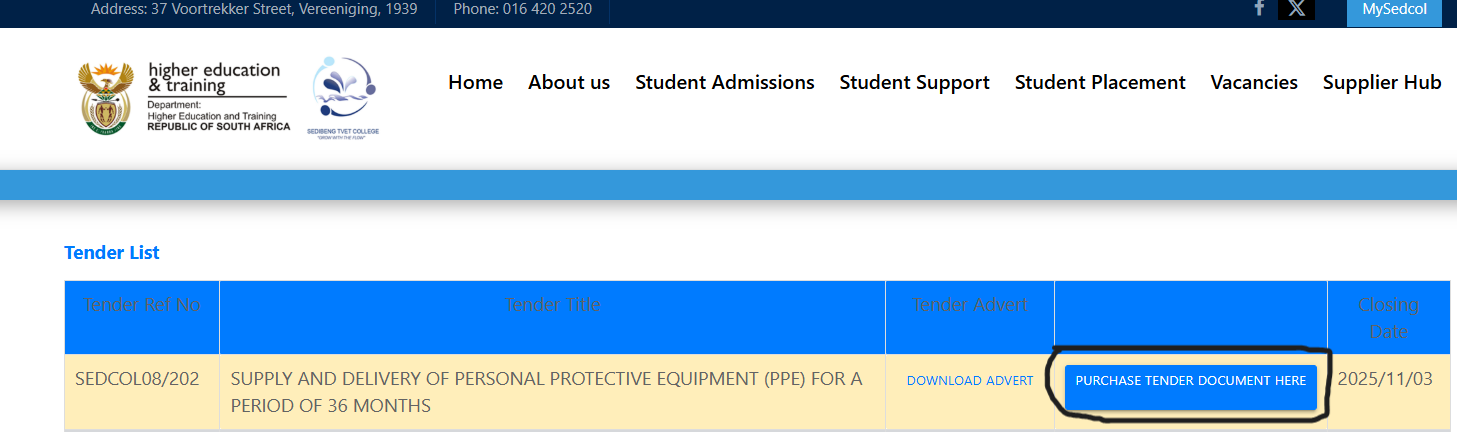 Sedibeng TVET College – Tender Purchase Guide